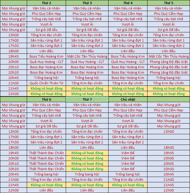 Bài viết tổng hợp các khung giờ hoạt động của máy chủ Tung Sơn , các hoạt động chính của chúng ta 99% diễn ra vào buổi tối :