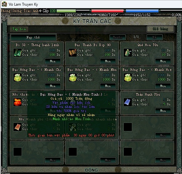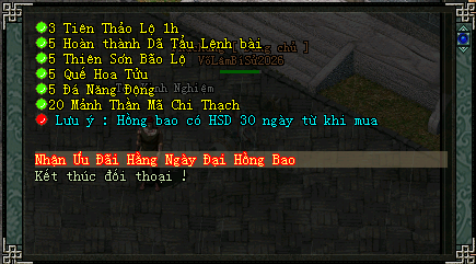 - Mua tại Kỳ Trân Các giá 1.000 Tiền đồng và sở hữu vật phẩm Đại Hồng Bao Siêu phúc lợi trong vòng 30 ngày