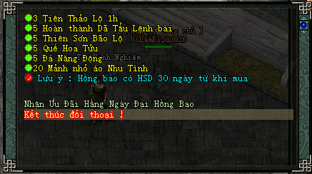 Phong Sương Toái Ảnh khai mở mang trong mình rất nhiều thay đổi , Đại Hồng Bao trị giá 1.000 Tiền đồng /30 ngày là một trong nhưng thay đổi đó . . .