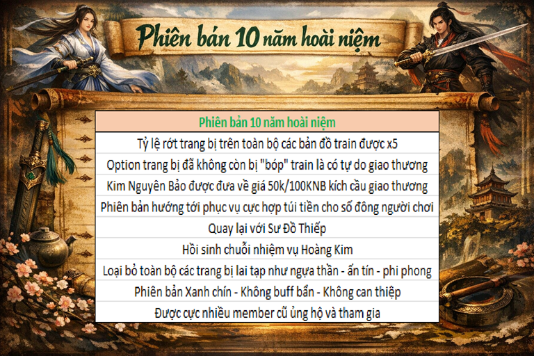 Chào cả nhà , thực sự là rất lâu rồi , tớ mới cẩm thấy Võ Lâm Bí Sử được ủng hộ , chờ đón nhiều như lần này , bởi lẽ đây là phiên bản hoài niệm lại 10 năm cũ , cái thời mà ký ức về võ lâm của chúng ta na ná như từ giấy trắng vậy :3